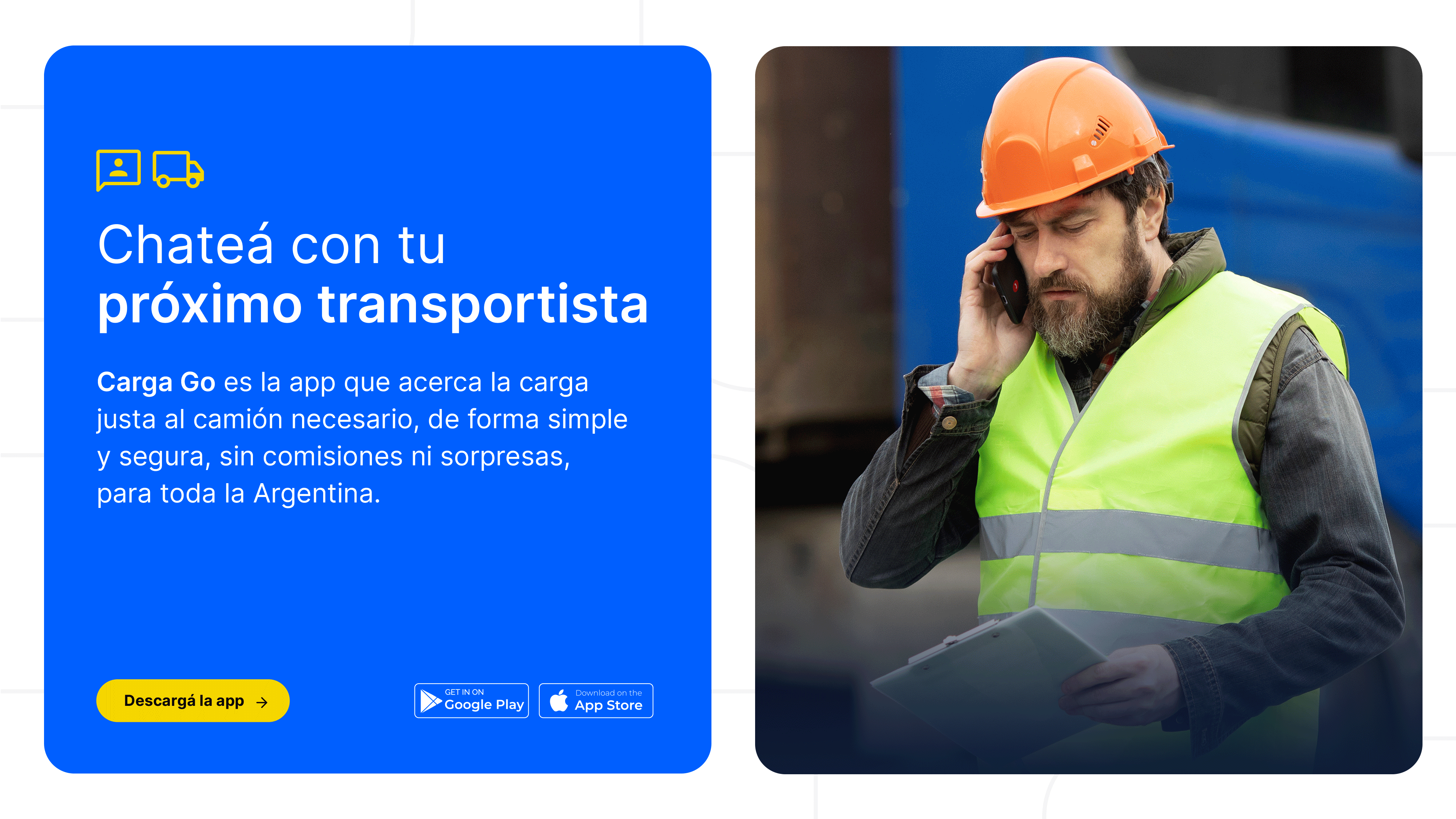 Carga Go is the app that connects the right load with the right truck, in a simple and secure way, with no commissions or surprises, across Argentina.