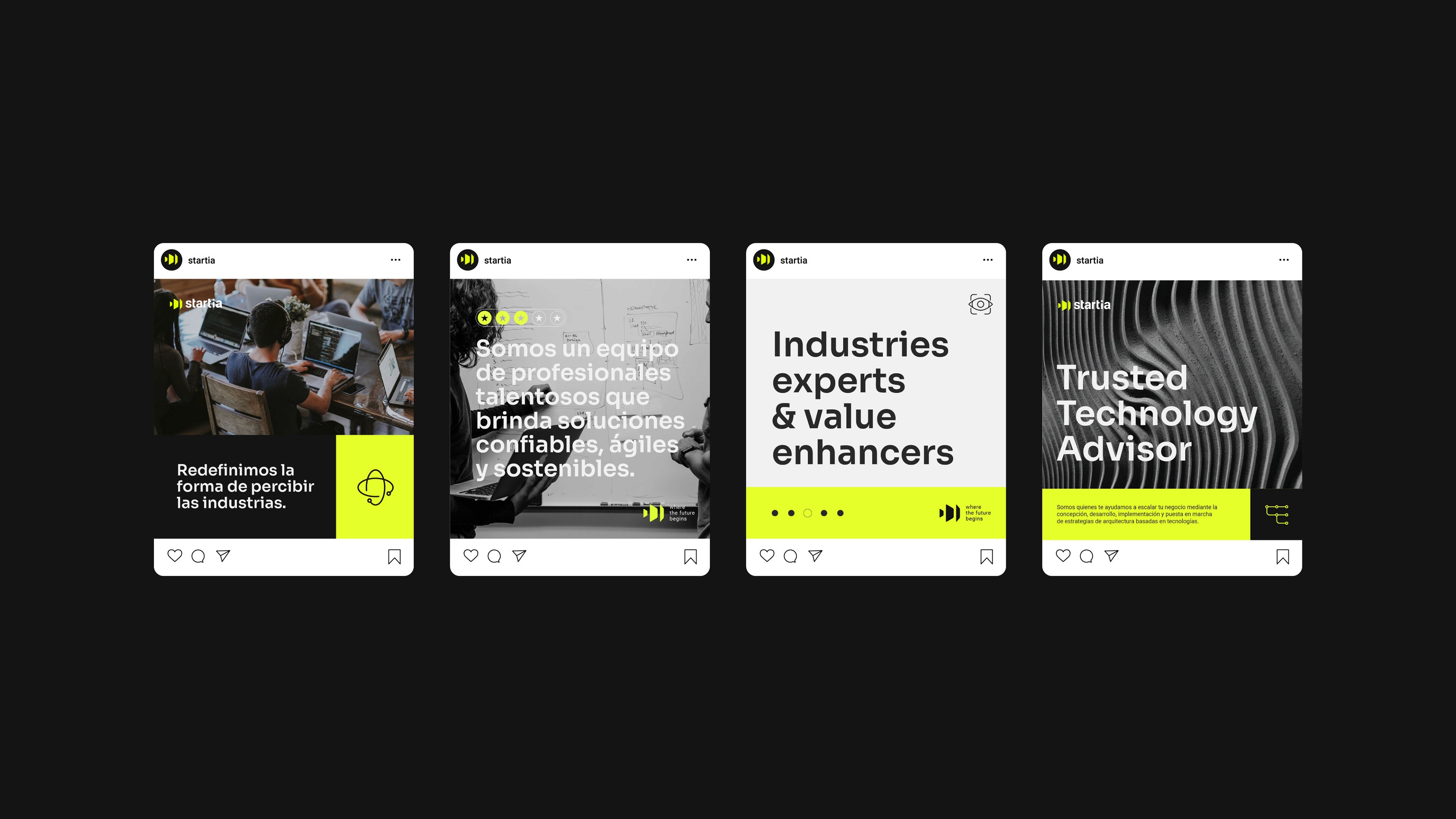 With the birth of the Ingenia group, new business units emerged. In this case, Startia is the company that evolved from the group’s technology architecture unit. In this context, we needed to build a new brand that would continue and amplify that trajectory.